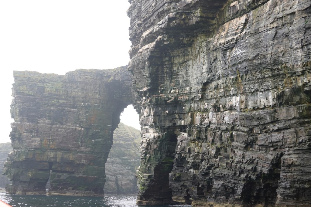 At first sight, a day in Wick seemed over generous. I found the John O’Groats trail down by the harbour, drank a cappuccino in the Wickers World cafe and then started walking south along the trail. However, I only turned the corner when I saw a small group of people putting on full waterproofs. A sign said “Caithness Sea Coast Exhilarating Sea Tours”. I signed up and was soon in the rigid inflatable twin engine boat, speeding out of the harbour, south to Whaligoe. If I couldn’t walk it, at least I wouldn’t miss the scenery.