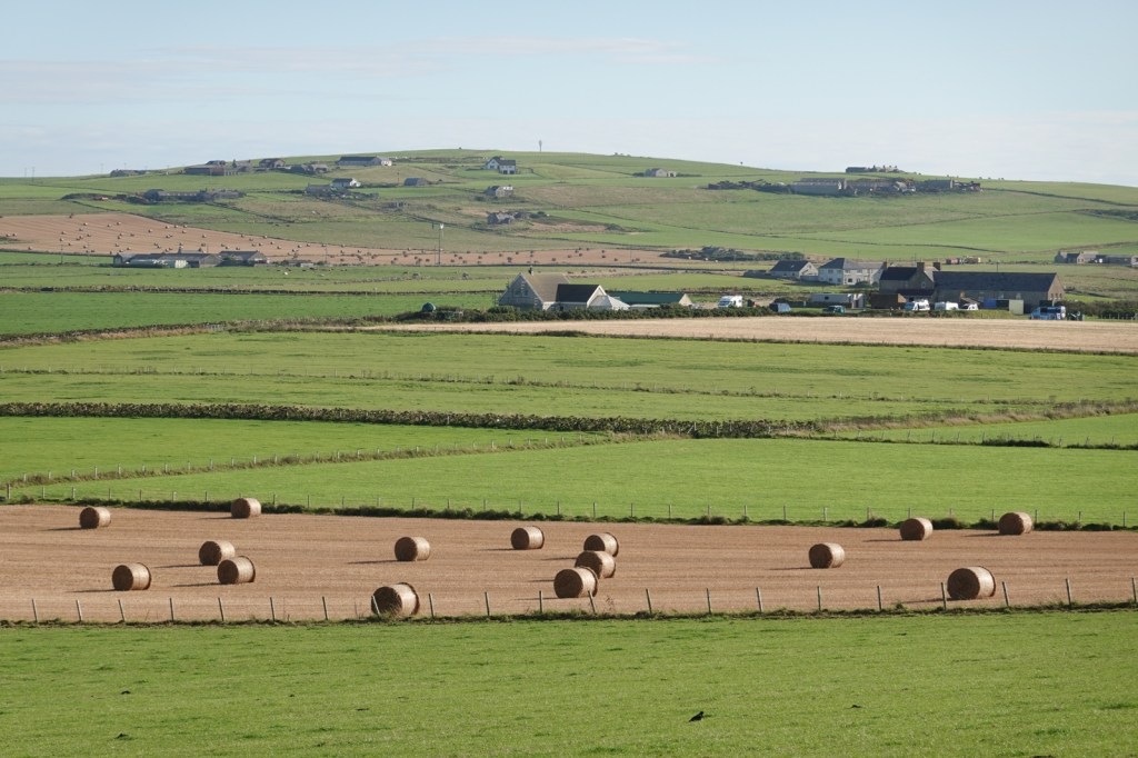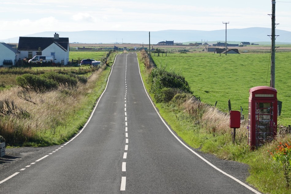 Unlike yesterday, today’s walk was mostly on roads. There’s no real traffic on Orkney, just the occasional car which slows down, indicates and moves across the road to pass. The frustration is not the cars but the fences that surround the fields of grass, shimmering in the dazzling sunshine. The landowner doesn’t want me walking on the land because I’ll make a mess. England is crisscrossed with footpaths with enshrined rights of way dating back to times when farm workers needed access to their fields. You can get off the roads and into the countryside. In Scotland you have complete freedom to walk anywhere in the countryside providing you don’t walk across a field of crops or damage anything. The landowners have the freedom to fence off their land with barbed wire and locked gates. So you can walk in the fields if you’re prepared to climb the obstacles or you have to stay on the road.