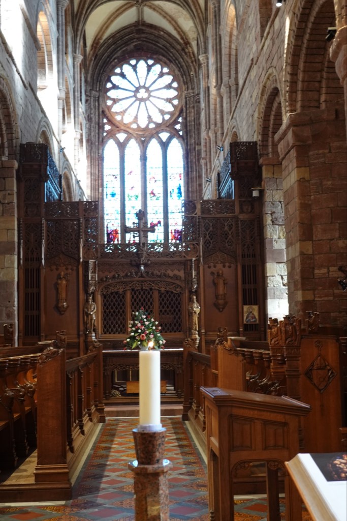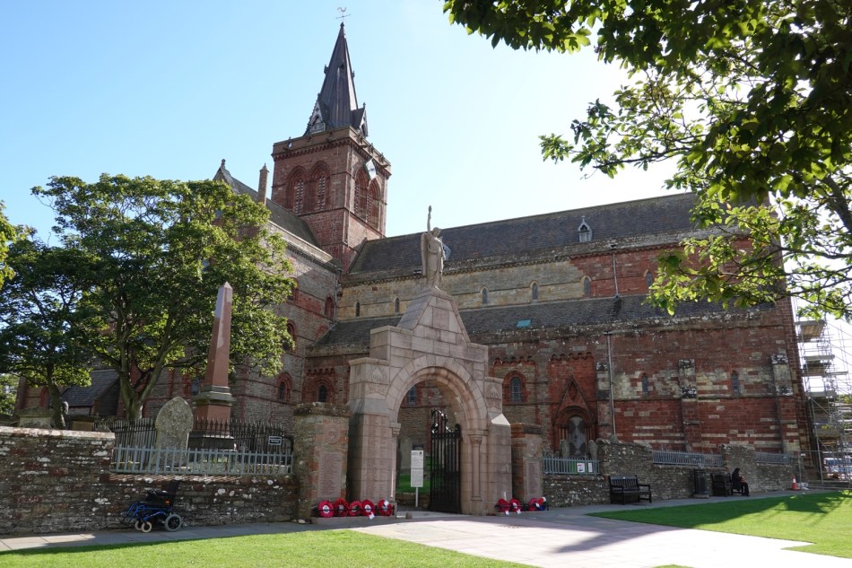 I reached Kirkwall and followed the pilgrim route to the cathedral. Rather than taking the direct route, I was directed to the harbour for a northerly approach which might have been more impressive. In the event, when I arrived, I was greeted by a wall of scaffolding. Inside, workmen were banging and drilling. It was noisy. It reminded me of a Humble Pie concert I attended at The Rainbow in 1970, since when my hearing has never been the same.