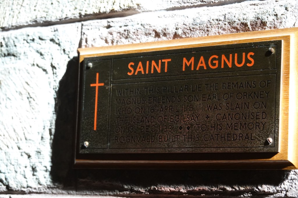 The church was built to house the bones of St Magnus which seem to have found their way into this pillar
