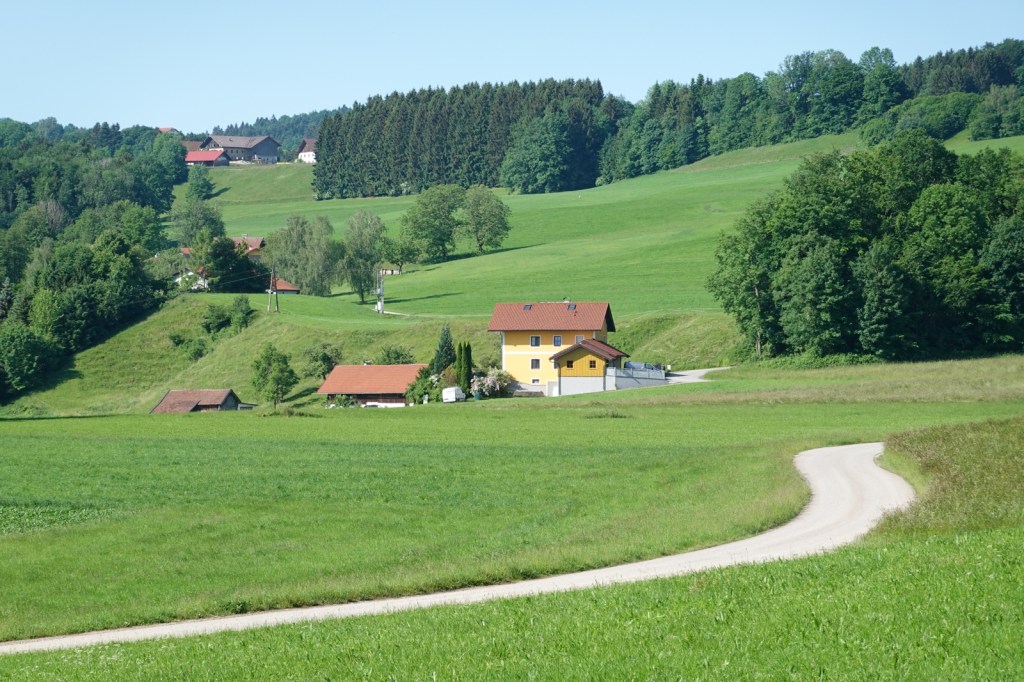 The Alps are much closer today. I can see the glaciers melting. In fact, Austria is looking more like what you’d expect from the movie. Everything is hills, green green pastures and cows. I heard my first alpine cow bells this morning and every farm I walk through is milking sheds, hay stacks and so on.