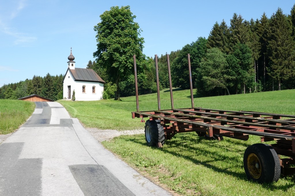Vöcklamarkt sounds like a Harry Potter summer camp and it lived up to expectations. Jakobsweg avoids the town altogether and Google Maps flatly refused to show directions to the guesthouse and so did Apple Maps. I found the place easily enough, at the edge of a wood and my room, No 17, was in the attic facing the woods. I shared it with six daddy long leg spiders which is more than you’d expect in one room because they’re not sociable animals. The rain started when I went to bed and that developed into a wild thunderstorm. Suddenly something came tumbling down the roof, perhaps a cat? I slept for a couple of hours and was then woken by what felt like a party outside on the roof. All manner of woodland animals were chasing each other up and down the tiles around me. They only briefly stopped when I switched the lights on. I don’t know how I managed any more sleep.