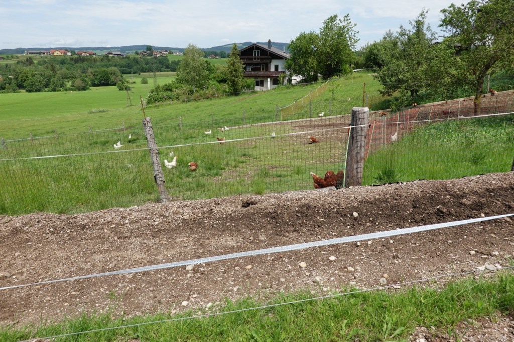 Free range chickens, electric fence