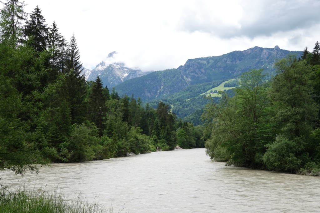 I’m back in Austria, in the Tyrol, the land of ski resorts and Mountains & Lakes coach tours. The scenery is nice. I walked through deep glaciated valleys and saw huge snow capped mountains. The cows were ringing their bells behind electric fences, the streams were splashing over rocks and the river was flowing fast. It was all too perfect. I passed through Unken and took a cappuccino in a huge empty restaurant. The village was empty and the tourist information office was closed.