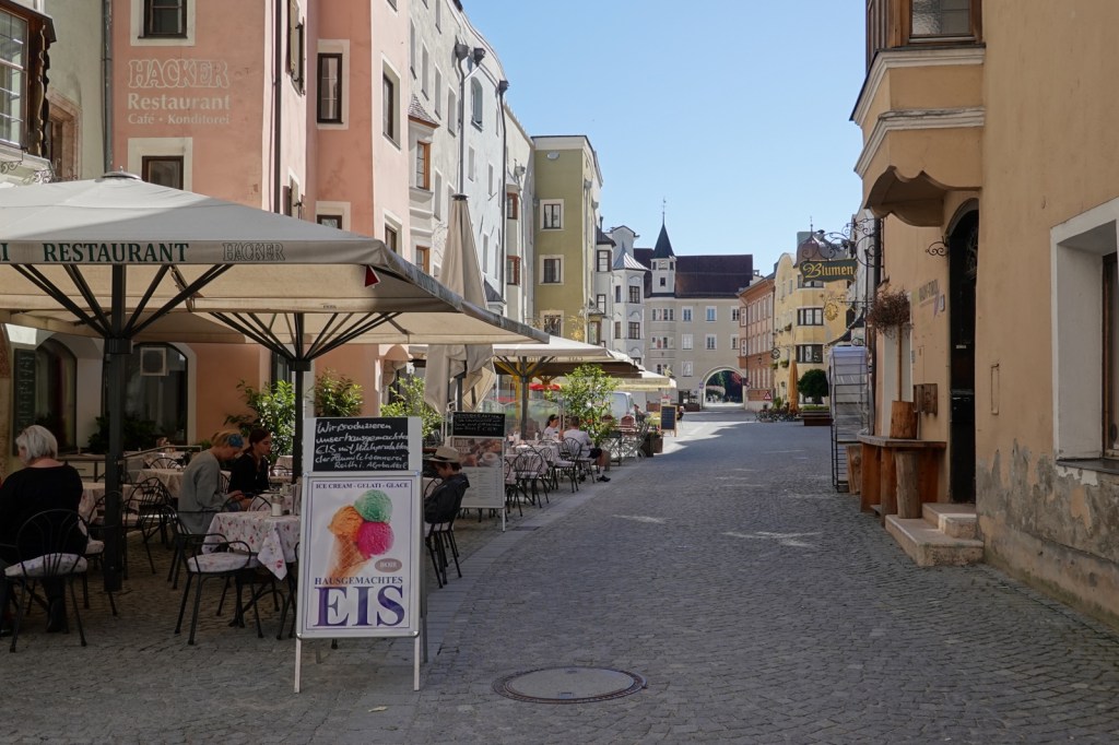 The Central Pension in Kramsach was a good place for the night and just turning up at the door got me a good deal. Booking.com was only offering poor hotels at the far end of town and nothing in Rattenberg. But when I walked through Rattenberg this morning I was surprised to see several hotels and lots of touristy things such as cut glass shops. I’ve given up booking ahead. In fact, both last night and tonight I’m the only guest in the hotel.