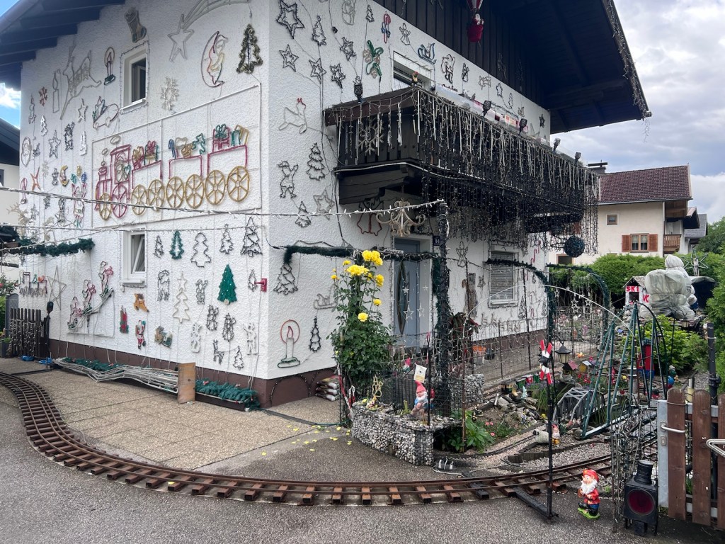 At 11.00 this morning I ambled down to Schwaz, a 23 minute stroll in a light drizzle. My quest was McDonalds, specifically the McCafe which would be a great concept if they could separate it from the hamburger operation. Nearby was a house completely covered in those exaggerated Christmas decorations which look ridiculous even in December. A large train track looped around the house and smaller ones were on the balcony. Well, just look at the photos.