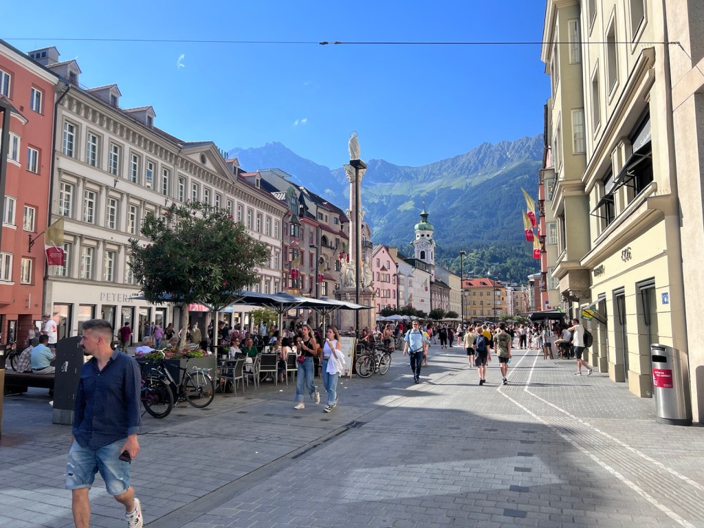 One bowl of goulash soup and a paracetamol from my first aid kit, a good night’s sleep and I was ready for the bright lights of Innsbruck. It’s the center of the Tirol winter sports scene and it means bridge over the Inn (the river). I only learned that this afternoon when I thought my notes were referring to an inn but all I could see was a river.