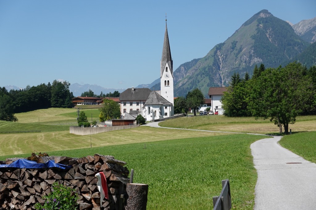 At midday I stopped at the Alpenhotel Speckbacher Hof in St Martin, Gnadenwald, “in the Karwendelgebirge Mountains with a view to the Inn Valley and the Glungezer Mountain”. Quite a nice place but hardly “Fabulous” (Booking.com). The local paths were busy with residents taking the air in their normal clothes, just like their predecessors in the sanatoriums of old.