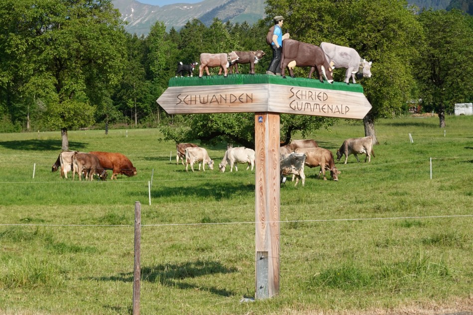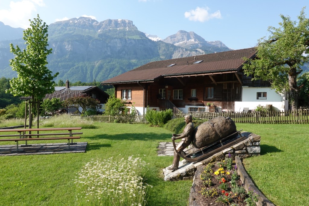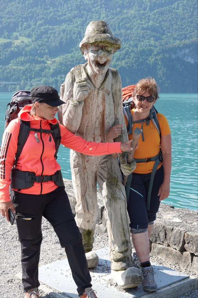 We left the pilgrim hostel a little late this morning because the owners made us an extra fine breakfast and then we had to take photos of each other. The walk from Brienzwiler mostly followed the north shore of the Brienzersee. We soon came to a tea shop but passed on without realising it was the last such place until 3pm. Immediately afterwards the climb began and we clocked 610m going up several times. The day was hot and the walk was tiring. The ladies produced some bread and Nutella from their packs which kept us going.