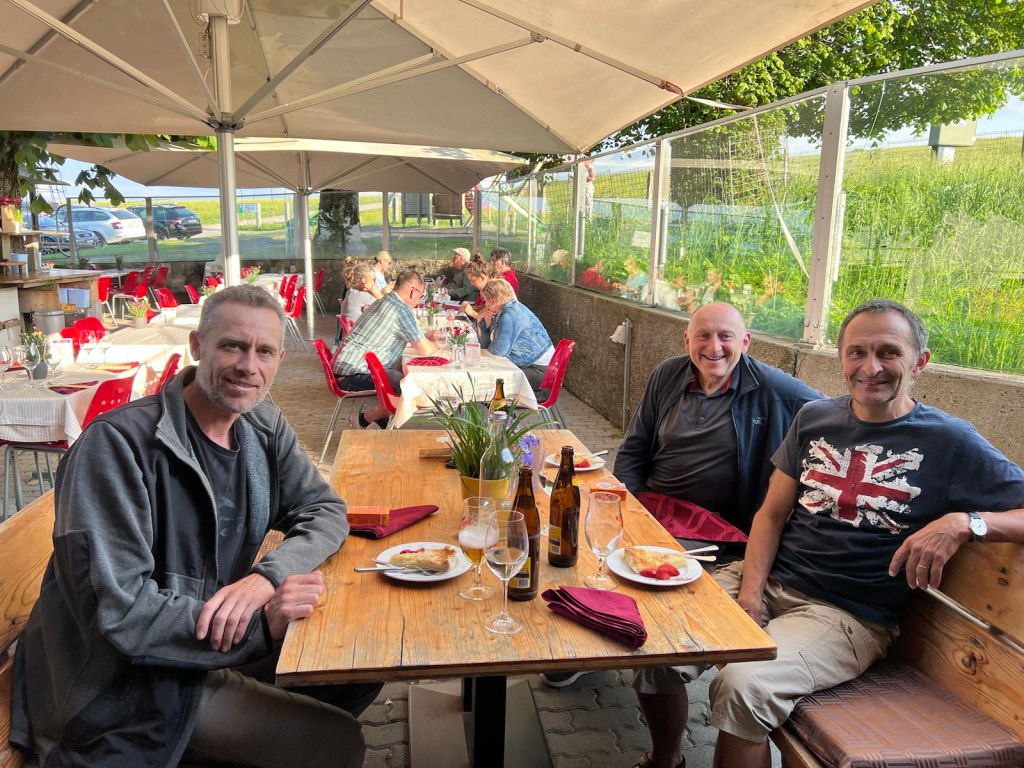 The best thing about today was meeting Ruedi again. Paul and I met Ruedi on our walk to Rome and he lives near here so it was wonderful when he found us this morning on his bike. He collected us in his car this evening and took us to a lovely restaurant for a Swiss rosti meal and we shared our memories of walking to Rome and discussed how the world has changed since we last met. There was no option for any dinner on the farm so it was extra appreciated.