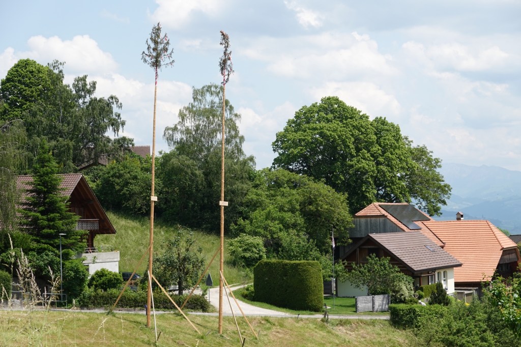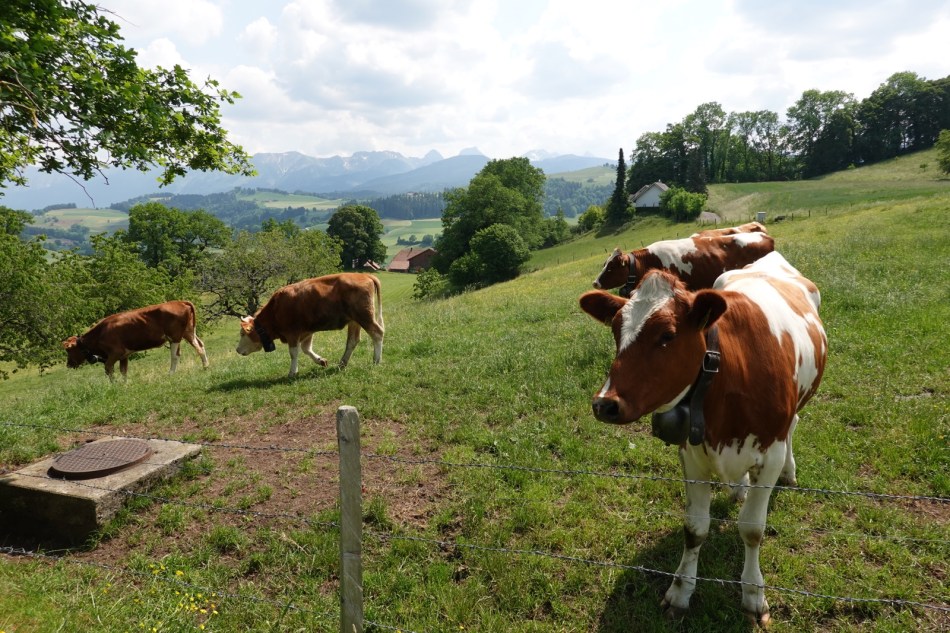 We’re blessed with another fine walk today. The sun was shining, the landscape was stunning, the plants are all flowering, the birds were singing and we even heard a few cuckoos. It was everything you could want from a walk across Switzerland, in fact we have extended the experience, perhaps unnecessarily, by staying on a farm this evening. It’s a proper farm too. Not one of those fancy places selling rural artefacts. Our room has been constructed in the corner of a barn and it’s easy to find because it’s right by the compost heap. You could find it with your eyes shut. That will be useful during the night if I need the WC because it’s in the next barn across the road and I don’t have a torch. I might improvise on the WC and find something closer.