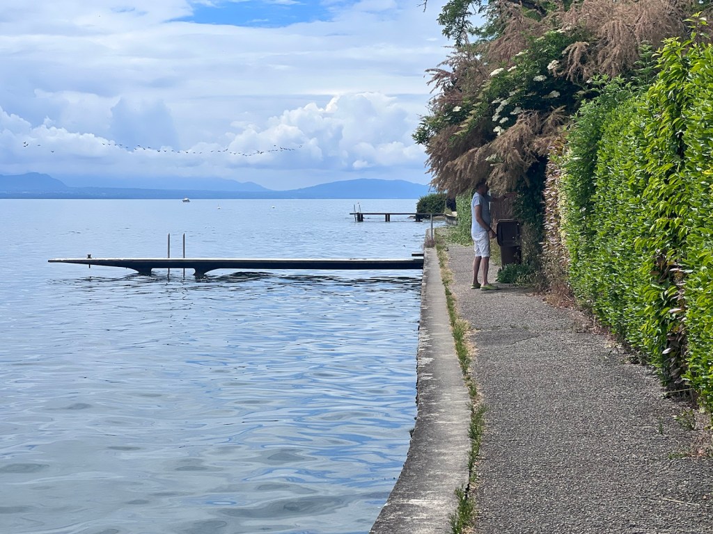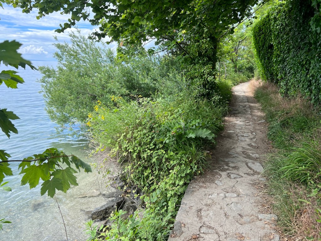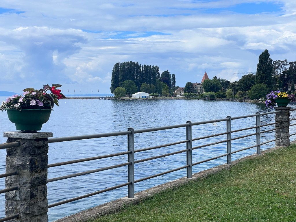 I set off to the station wondering why I could routinely book the accommodation in Japanese but not in French. The train took 15 minutes for the ride to Lausanne and then I turned around and walked back to Morges along the shoreline of Lake Geneva, looking across the lake to France. Delightful walk. Lots of people enjoying their Saturday morning in the sun. Lots of expensive houses. Lots of bird life.