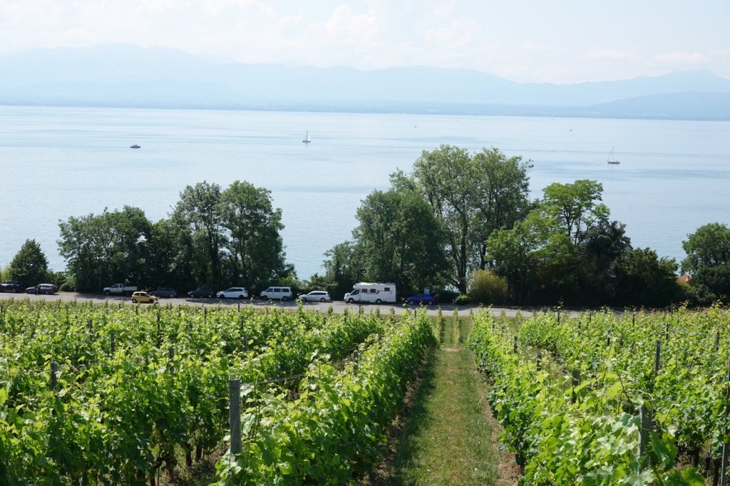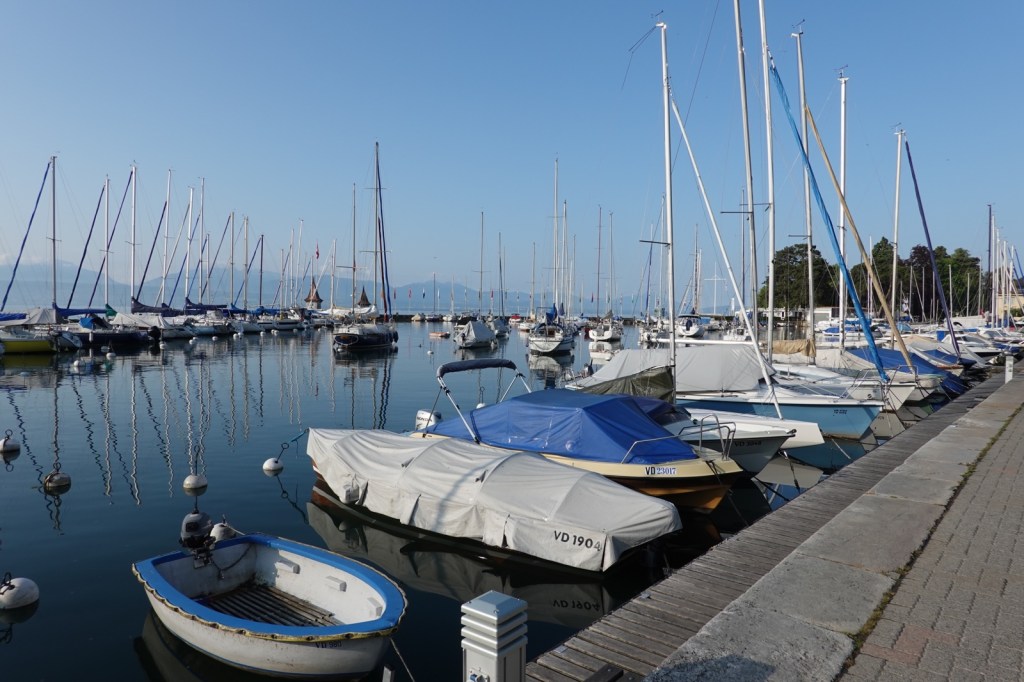 At first the path followed the shoreline of Lake Geneva and all the Sunday morning sporting types were out for a jog. The yachts looked attractive in the sunshine and a few families were staking out their territory on the beach.