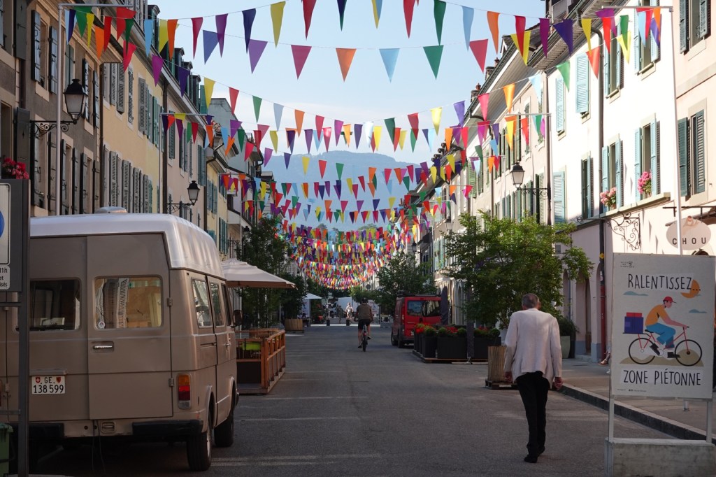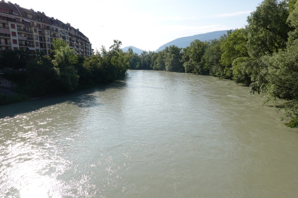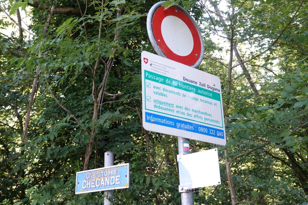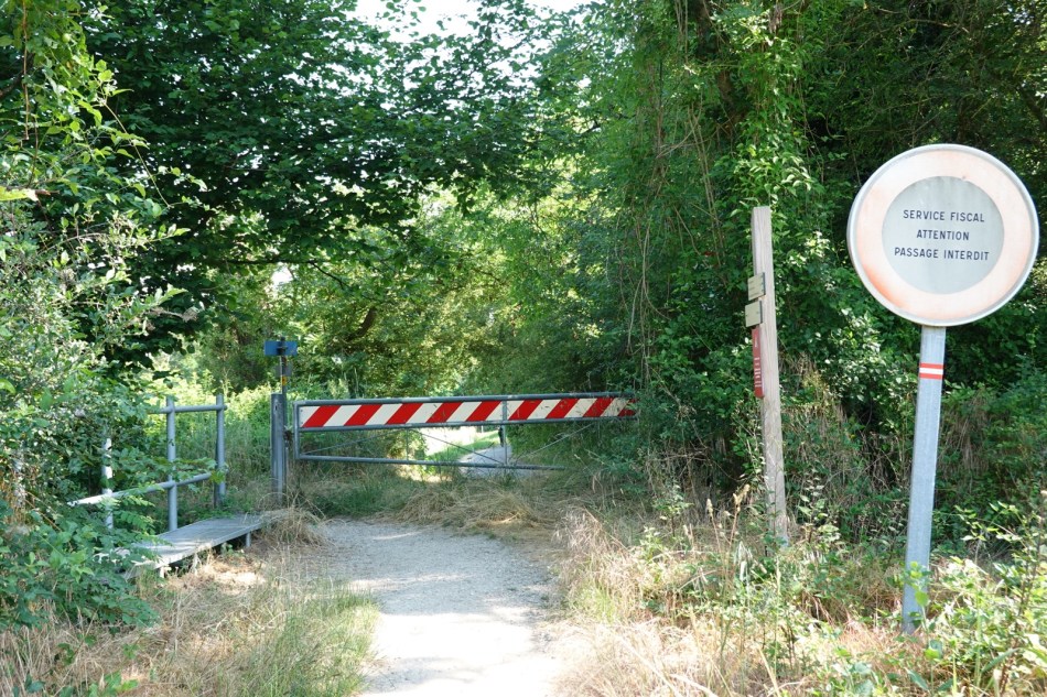 So after referring the matter to Andrea who runs the facility, I found a nice cafe in a very arty part of Geneva for breakfast then set off towards France. The path took me on a long detour through woods when I could have stayed on the road and saved two kilometres. And then, there it was, the border, or at least the relics of it; a simple and symbolic red and white barrier and a faded customs notice. Not a hint of a welcome to the EU. It’s as if they’re already members.