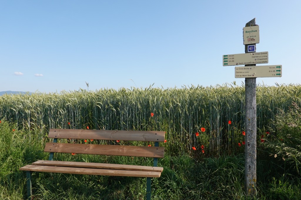 A bench to sit on, what luxury! At the other end of the Via Podiensis finding a seat (rather than the ground) was rare and generally by the time we did discover one we were exhausted! Take it easy, high 20s temperatures aren’t conducive to comfortable walking!