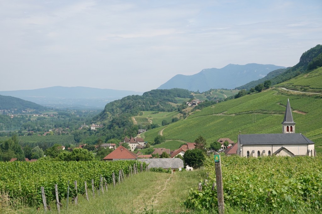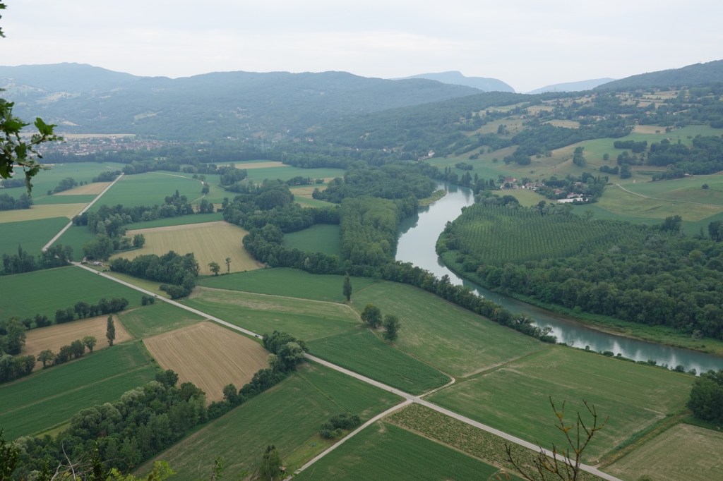 Eventually we coasted into Yenne. The first priority is to secure lunch because our accommodation doesn’t have food and the restaurants don’t open Sunday evening. The town looked deserted and the shops were closed. An unhelpful local man said everything was closed but the cafe was open and most of the tables on the terrace were occupied with people eating delicious looking meals. The time was 13.35. The waitress appeared with an arm full of salads she was delivering to our neighbours and she said the kitchen was closed.
