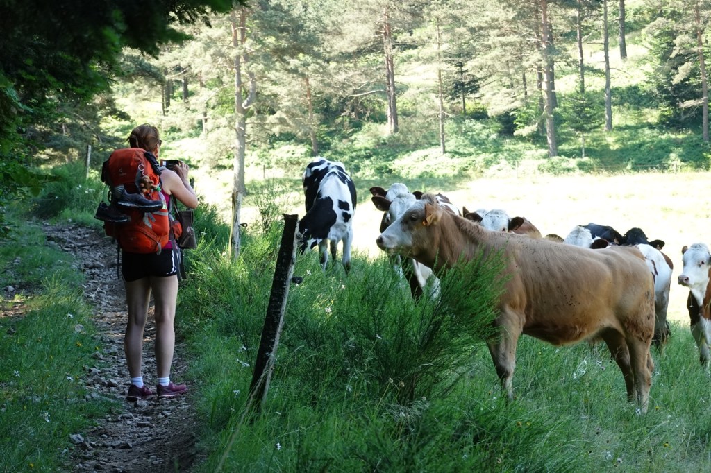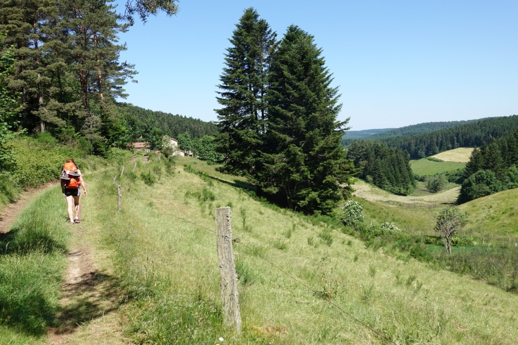 We are now safely in Montfaucon-en-Velay (and when you see en-Velay in the name you know you’re getting close to Le Puy-en-Velay) but after a succession of wonderful accommodations we have found a one star hotel which is quite rare in France. There aren’t many of them. Judging by the vintage photographs it was quite nice in the past but now it has lost its appeal. The people are friendly and we’ll dine well but the rooms defy description. It’s unlikely anyone has stayed here for months so hopefully the bedbugs will have died of starvation.