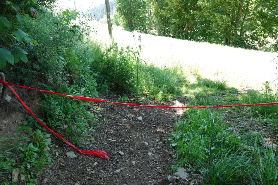 The scenery might have been beautiful but our peace was shattered by the constant noise coming from the valley below. Later we encountered the dreaded red tape again and we had no choice but to walk along the race track, jumping into the nettles as the next car approached. We were now dodging classic cars and ahead of us a BMW had crashed and the drivers were having a bit of a discussion about the situation. They stopped in mid sentence when they saw us approaching and we sheltered behind the stricken car while the other cars roared past. Apparently the “crazy pilot” lost control, the car flew into the air and came down nose first.