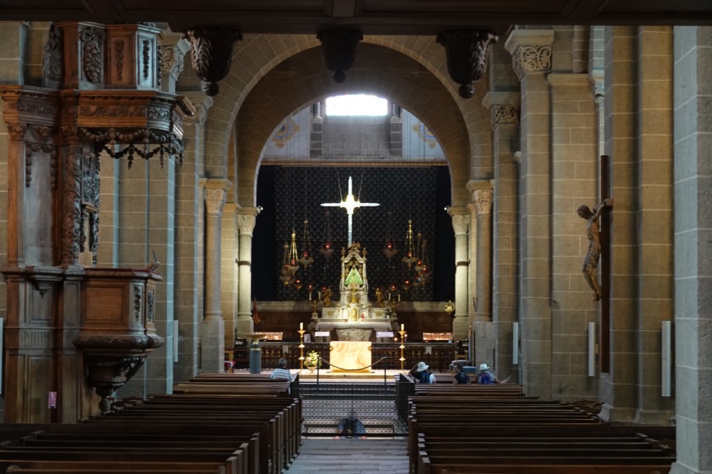 Robert is suffering from blisters so I set off alone to spend some quality time in the Cathedral and its cloisters. I climbed the 134 steps which lead the congregation directly into the centre of the Cathedral. The daily 7am pilgrim mass was over and the lucky pilgrims were already on their way along the Via Podiensis so I was more or less alone. Me and the Black Madonna.
