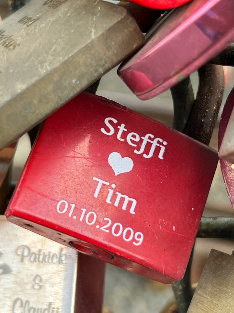 I managed to find a couple of padlocks in a few minutes but you’d have found dozens. Such a nice idea providing the bridge can take the weight. I think it started on the Pont des Arts in Paris which collapsed under the weight