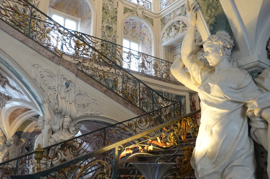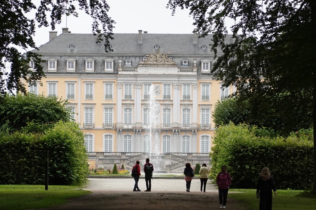 Brühl, however, is a delight. It’s dominated by the early 18th century Augustusburg Palace and its huge gardens, a masterpiece of early rococo architecture. By good luck I arrived with a party of Vikings and joined their English language tour so I know quite a lot about the place. It’s UNESCO listed, of course and was built by the Archbishop Elector of Cologne, Clemens August of Bavaria. It was all too much for him; he died in debt and they literally sold all the furniture to finish it.