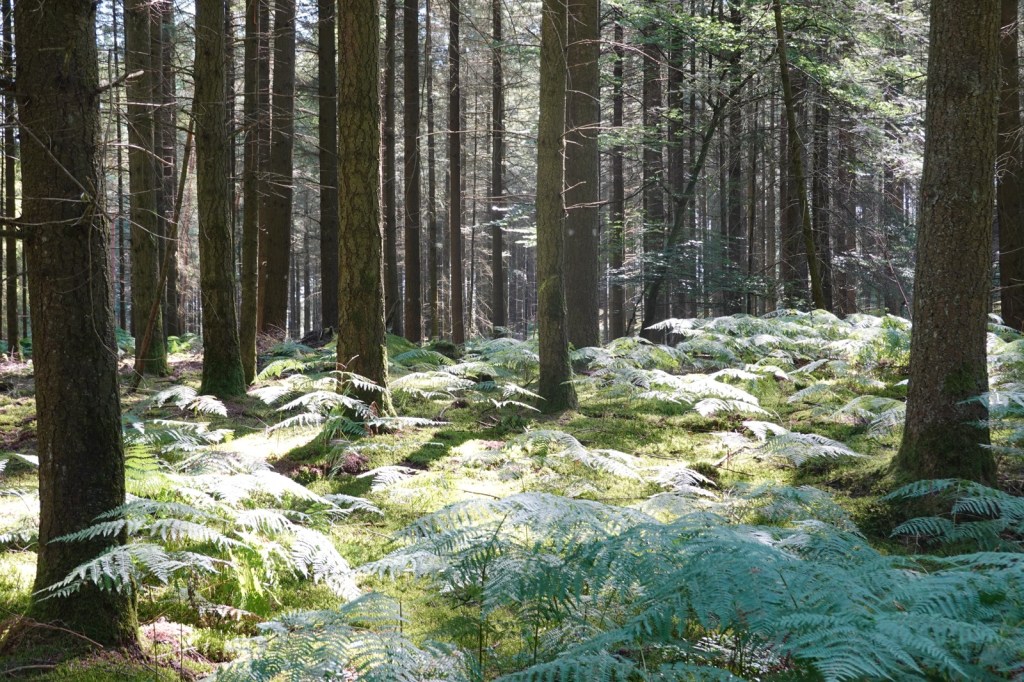 This morning I set off from Mettendorf with a cheese roll from the buffet and soon found myself in a forest of Douglas Fir trees. They were among the first immigrants from North America in 1827 and they love it here. These trees are tall but they let sunlight in so there is much plant life in the undergrowth. I saw another deer. You have to be Deer Aware here. No need to be Bear Aware.