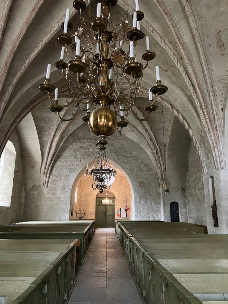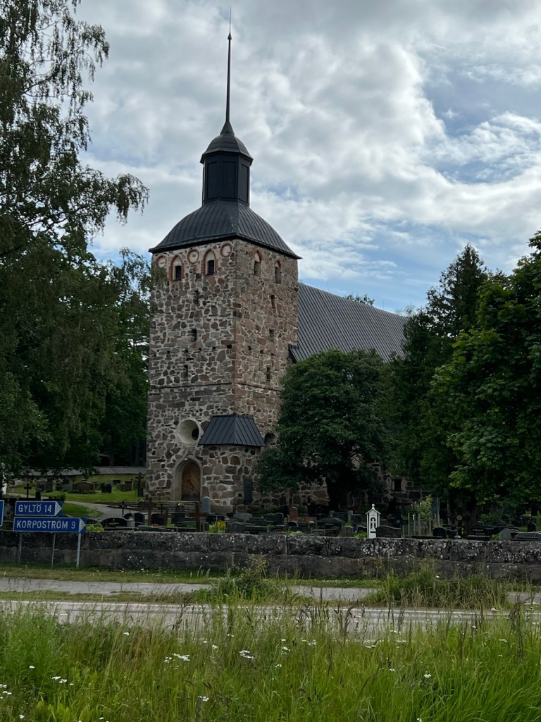 You’ll be relieved to hear that I had a good breakfast this morning. There was nothing edible in the inn but I found a real bakery in Korpo and bought a pastry topped with strawberries. The owner said her day starts at 2am baking bread and then she runs the shop until it closes at 1pm. But she is 65 and the business is for sale so you know what that means. A coffee from the village store for one euro set me up for my exploration of the church.