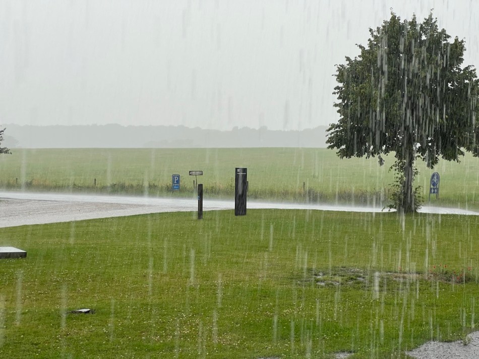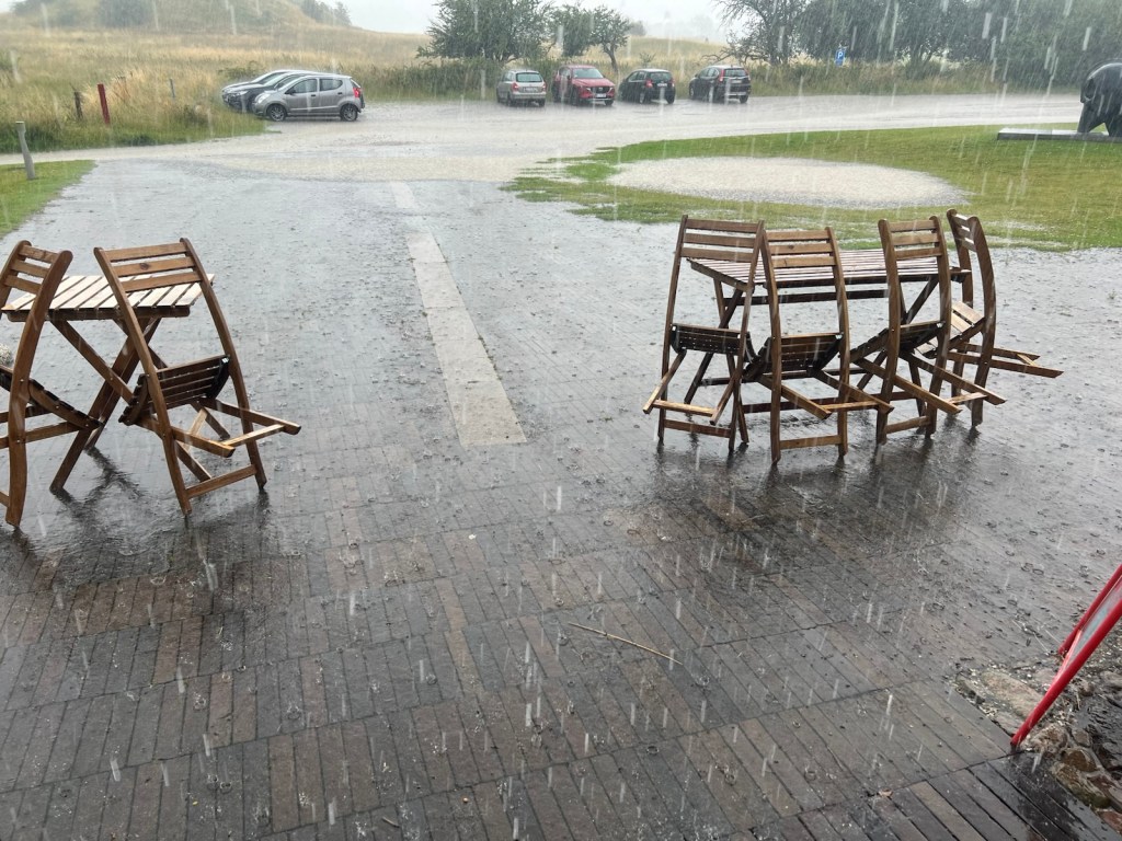 The time was 12:30 when I arrived at a small Viking museum and a sign said “Kaffe”. That was an exaggeration but I went inside because a few drops of rain were falling. It soon became torrential. I ate my sandwich, watching and waiting as the rain fell. A few more people arrived and a bit of a Key Largo atmosphere developed inside the “Kaffe”.