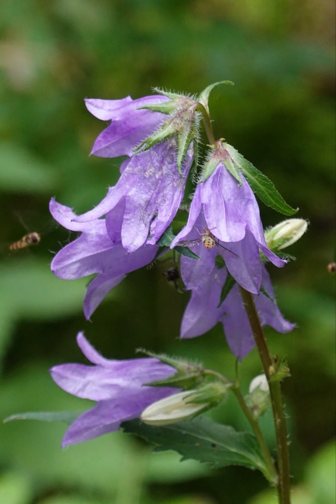 They’re beautiful and seem to grow wherever I go walking. In English, their proper name is Campanula but they are commonly called bell flowers