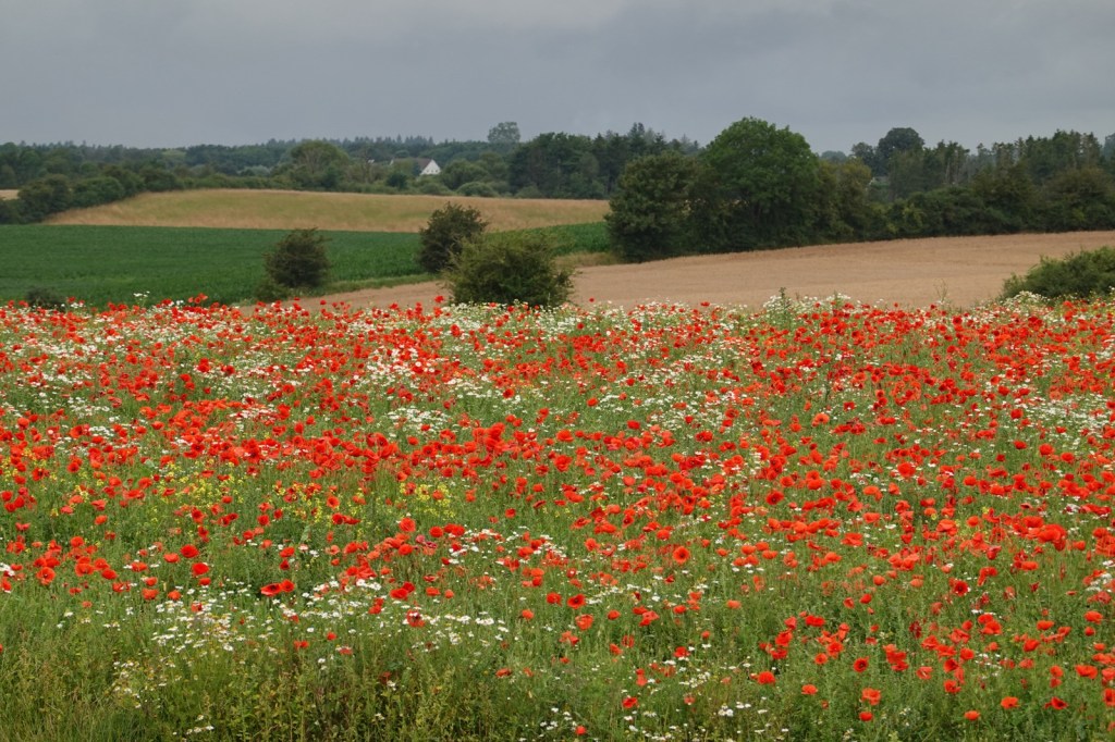 I was naturally sad to leave, this morning. There was no rain but everything was wet. On offer today was forest, barley, poppies, lots of grass and marsh. I arrived at the miserable Scandic hotel in Ringsted (which cost a lot more than last night) at 12:30 and was bluntly told that check in started at 4pm unless I was prepared to slip them 200DKK for an early check in. I can’t wait for the inevitable email with the survey. So I had three and a half hours to explore the church and a nearby bar.